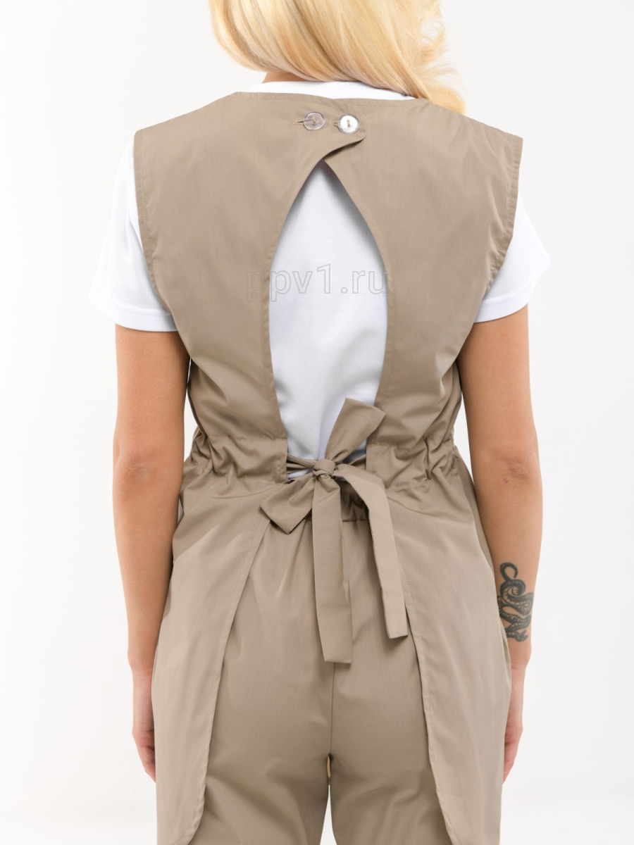 Размеры: 46-50, 52-58. Цвет: песочный. Материал: 35% хлопок, 65% полиэстер. Застежка: завязки, пуговицы.