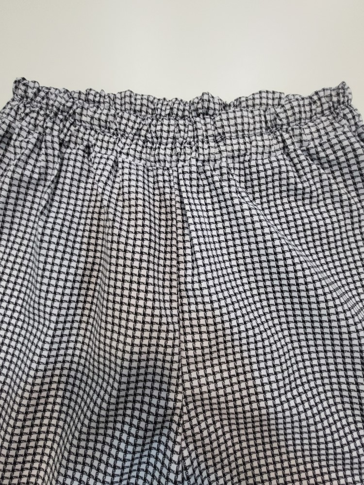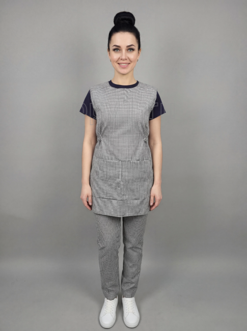 Материал: 35% хлопок, 65% полиэстер. 5 размеров: 44, 46, 48, 50, 54. Цвет: гусиная лапка. Застежка: широкая резинка. Ткань легко стирается и быстро сохнет, что особенно важно для профессиональной одежды.