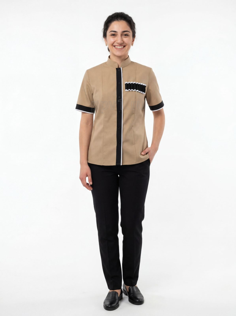 Материал: 35% вискоза, 65% полиэстер. Застежка: пуговицы. Официантам,администраторам, поварам. Пошив на заказ.